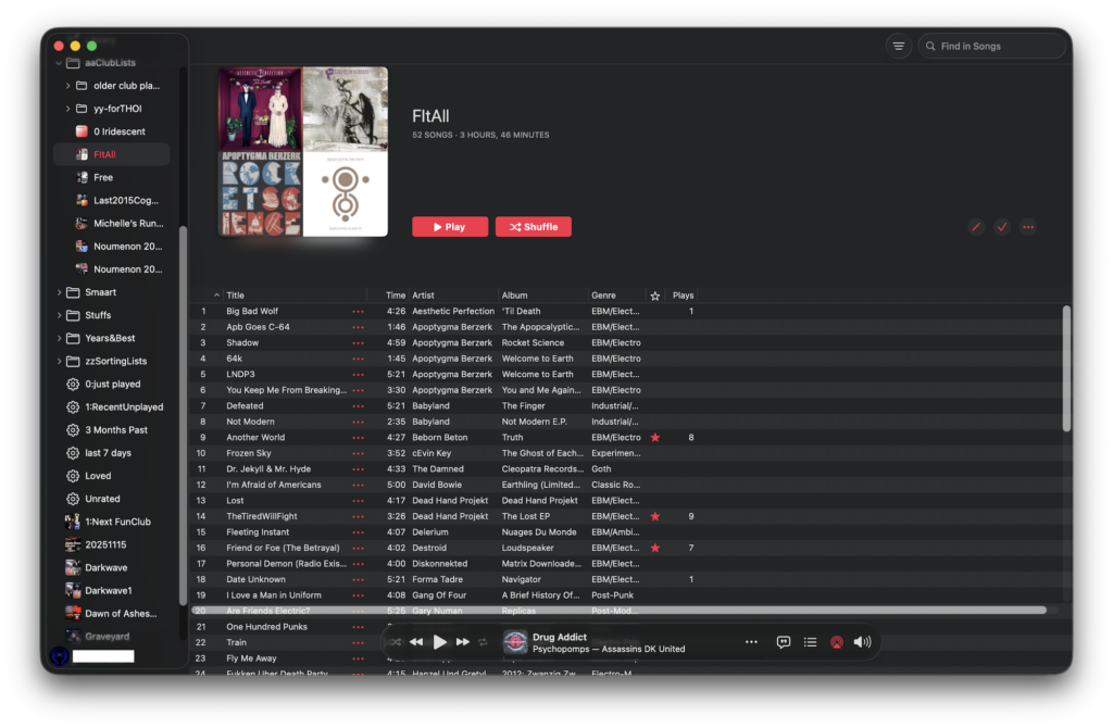 For the past many versions playlist metadata takes up a third of the screen on a laptop showing a mini-collage of 4 album covers and the name of the playlist in huge letters, and under it a description of the playlist you wrote. It also gives you the number of tracks and the playlists entire duration. This extra info was doubled because it was also shown on the bottom of the main window. That status bar is missing despite choosing it as visible in the View menu. It also has a very thick padding of “dead air” around the entire (we’ll call it a) playlist info pane. This extra space takes up 6 lines of songs (looked at it from “View…As Songs” setting.) Now with Tahoe, and extra 4 lines are taken away for the fat curved corners. Want to see a 40 song playlist all at once so you can rearrange them, and you have a MBP16? Tough: you can only see 32 songs at maximum size.