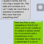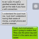 I get into conversations about technology all the time, even when I’m not expecting to. But these days everyone has some sort of computer disguised as a mobile device. I’m a staunch advocate of full disclosure, so I’ll prefix this by saying I’m not getting compensated in any way to say anything pro or con about any company mentioned here. This was the conversation that broke out with someone who has no horses in the race as well. The person on the other end chose a Blackberry over Android and iOS. The only alterations to the following screen shots is the removal of any names. The new Amazon Kindle Fire is out now and it’s getting pretty decent reviews. But when you talk frankly with people they tend to give their real opinion. Read on to see what the real reaction is and what everyone is too polite to say: